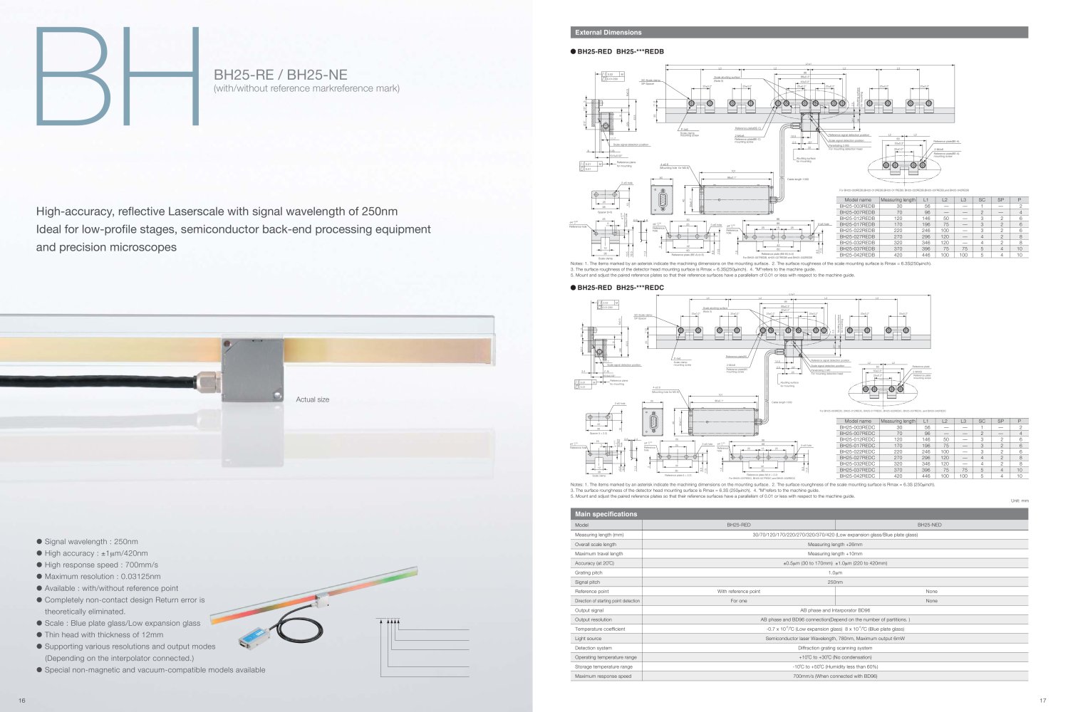 High-accuracy, reflective Laserscale with signal wavelength of 250nm Ideal for low-profile stages, semiconductor back-end processing equipment and precision microscopes